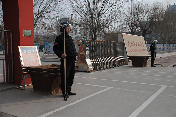 期間,共對慶云云天學院、金書教育集團、第五中學、渤海小學、實驗小學、好幼兒園等13所校園安保工作進行了逐一檢查。李建德總經理向教育局領導詳細介紹了各校安保隊員、器械裝備、管理制度落實情況及應急處突預案的基本要點。教育局領導對公司高起點、高要求、高定位的校園安保工作給予高度評價,并對公司一流的管理、一流的服務、一流的裝備表示非常滿意。對我公司在慶云承接的校園安保工作給予厚望。